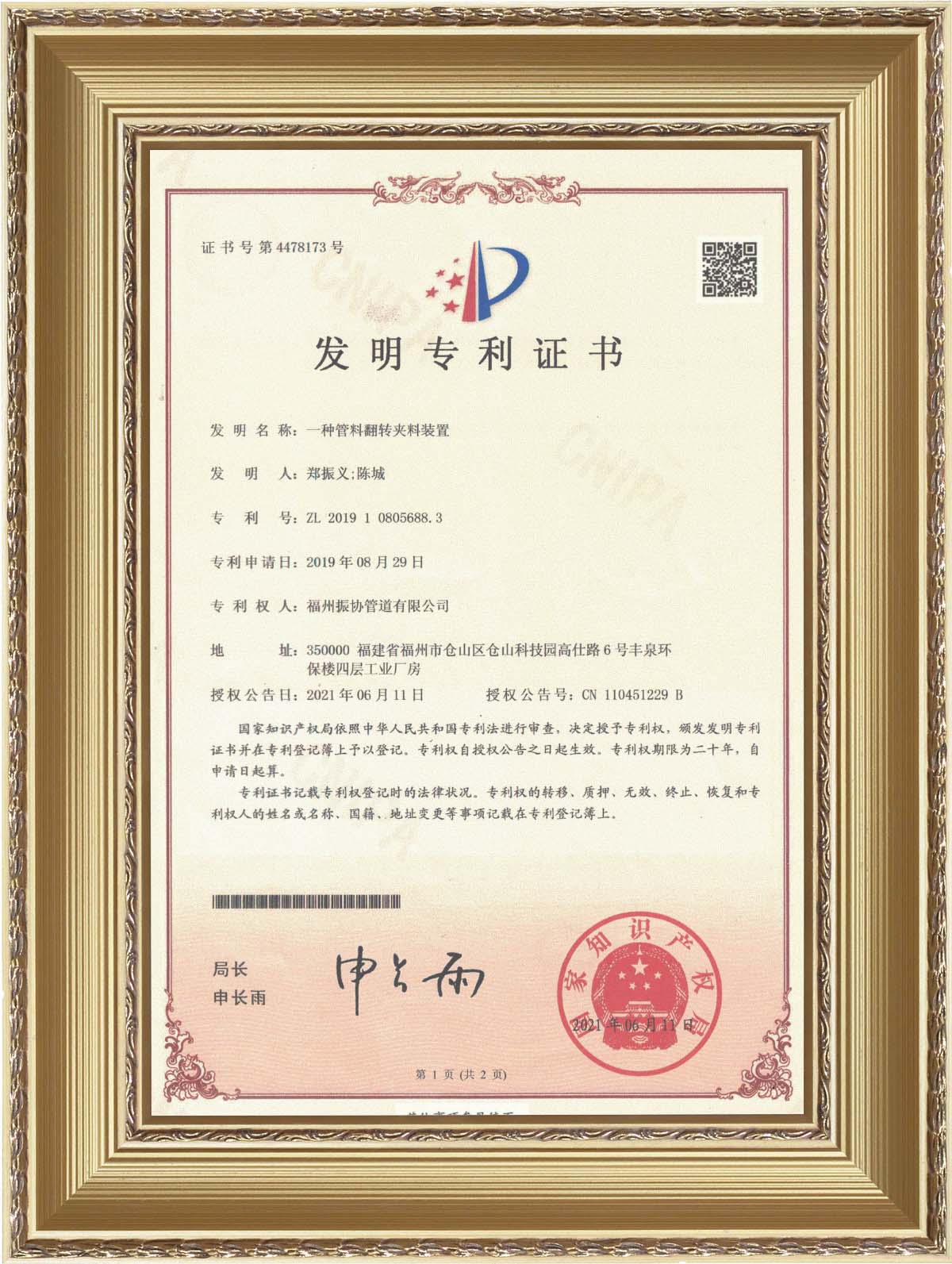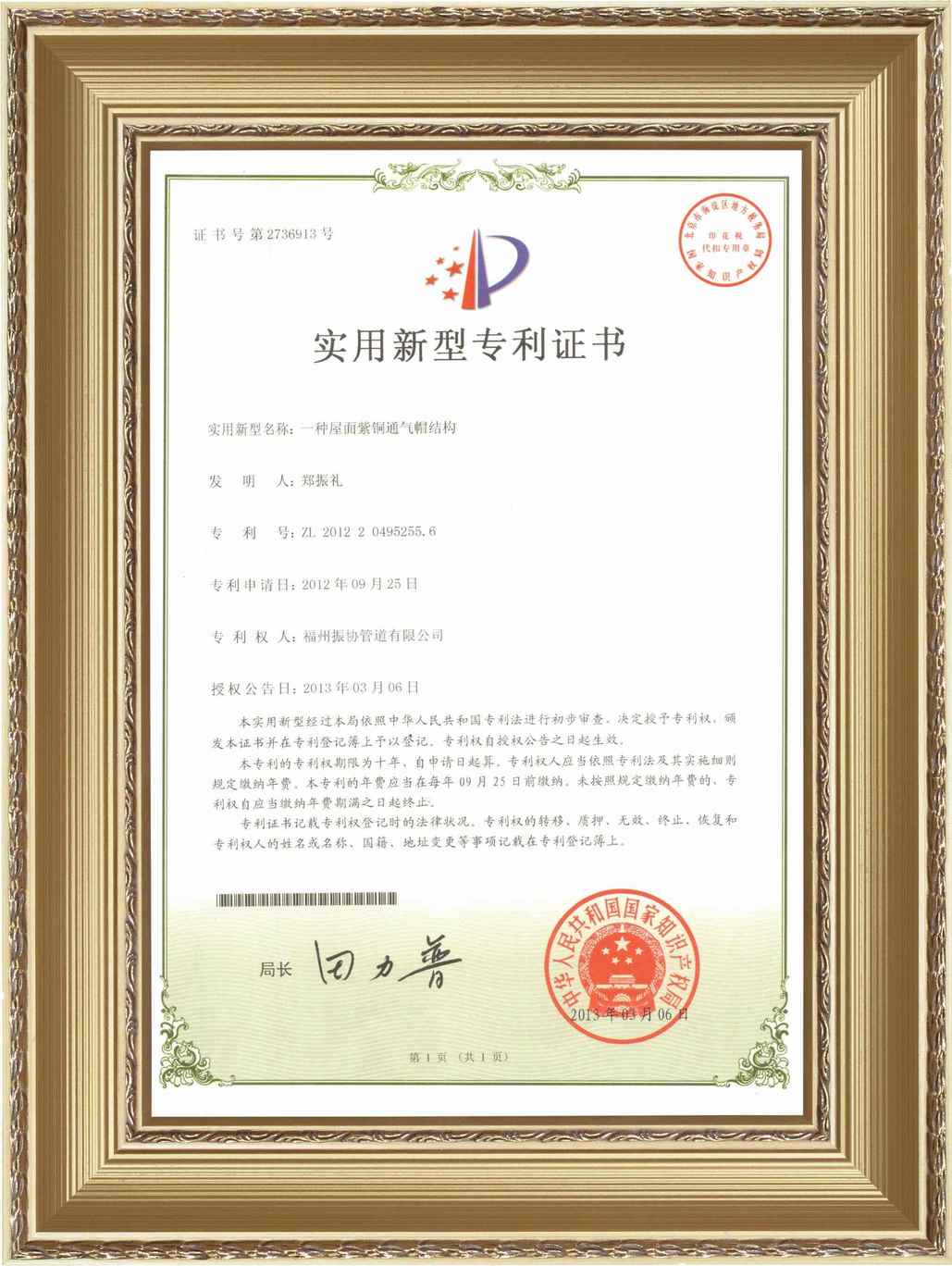 捷思实用新型专利证书