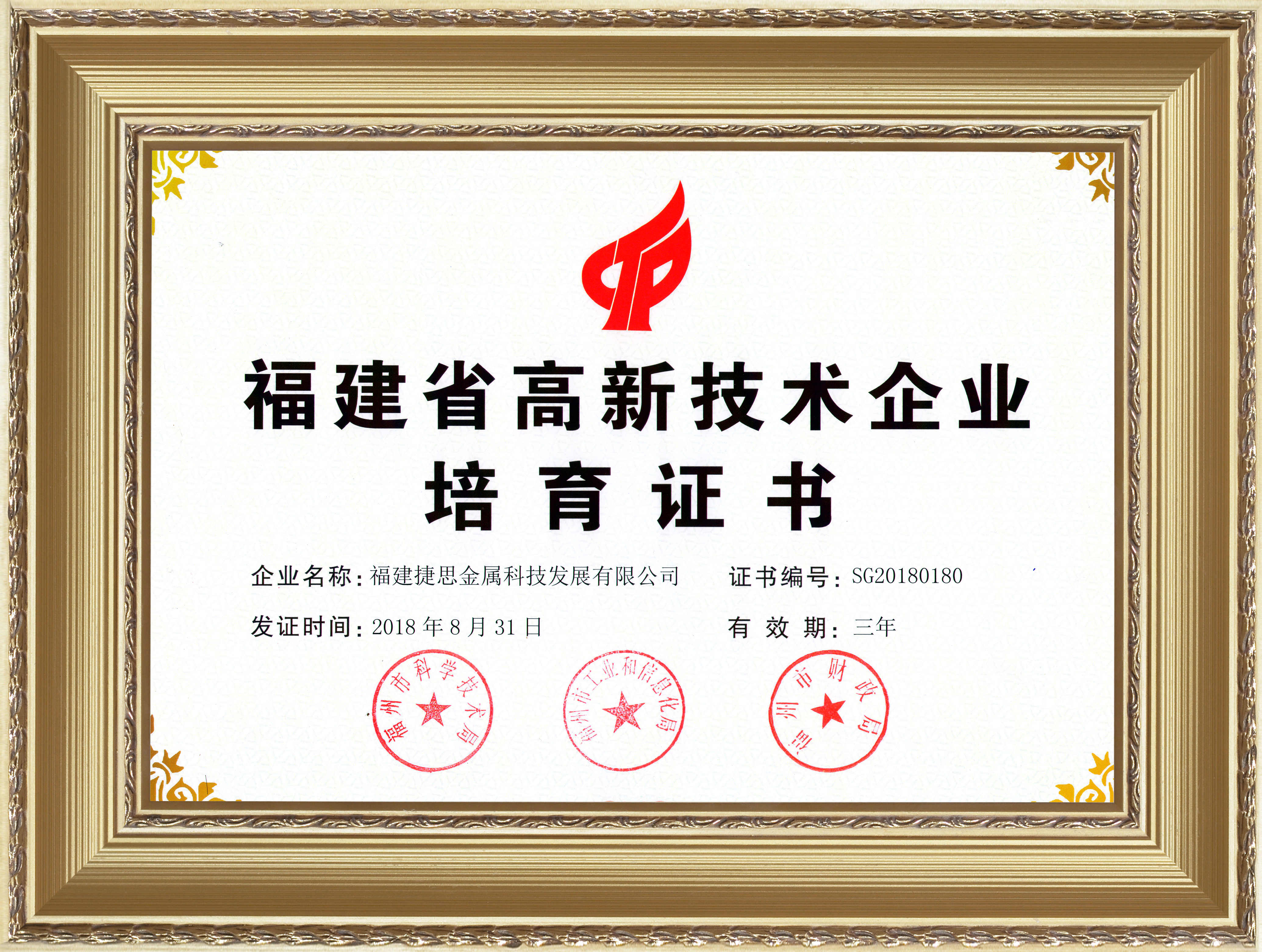 高新技术培育证书