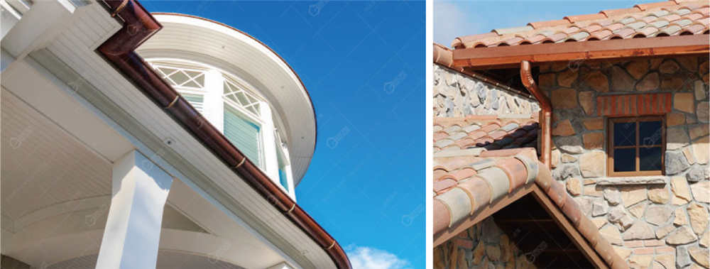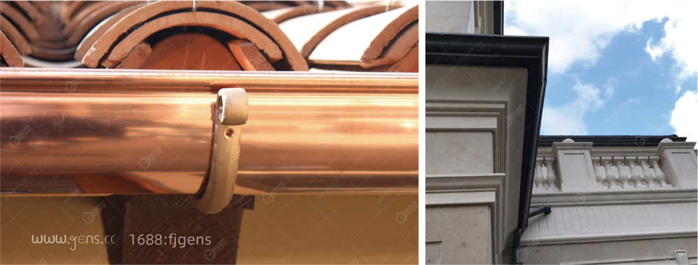 而在这一切的开始,需要要为自己的檐沟选择合适的材质,这一步很大程度上影响了日后檐沟的清洁与维护。这里选用铜檐沟作为代表,因为铜是耐用、无损耗的材料,选用铜檐沟可以大大的减少在日后的维护中所需要耗费的成本。