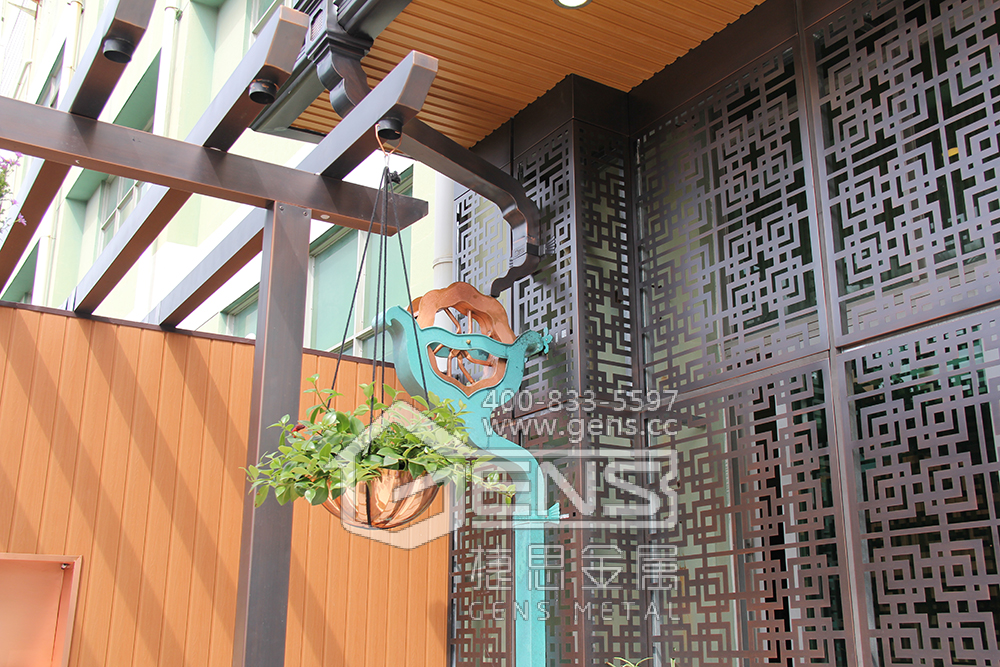 水车、摇椅、雨链、园艺和墙面艺术的碰撞,让你在经典的建筑铜装饰景观中有着有恒的优雅感受。这一方铜和建筑家居相融的景观,便是来自捷思设计师和工艺师的共同作品,雅致而从容,集高雅和温婉于一身,仿佛置身于铜艺的空间,让你感受到别开生面的惊喜和真趣。