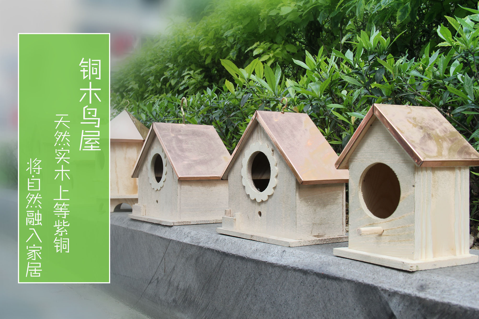捷思鸟屋采用人性化的设计,仿造屋子的外形给予家的视感,屋身采用来自大自然的原始木材,屋顶则采用T2紫铜锻造成不同的立面形状。既有原木的自然纯粹,又有金属光泽的耀眼迷人,是鸟儿温馨舒适的住所。