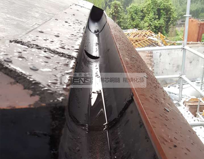 封檐板是指在墙面外侧的挑檐处的板块,可以使建筑免受雨水的侵袭,也增加建筑物的美感。捷思团队的紫铜封檐板采用优美的弧形结构,与暗藏式天沟完美搭配,设计巧妙,独具匠心。