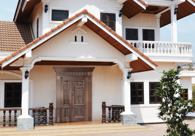 在很多别墅建筑中,人们都会选择铜门,铜门色泽亮丽、给人高雅的感觉,同时其尊贵奢华的色泽使其光彩夺目。