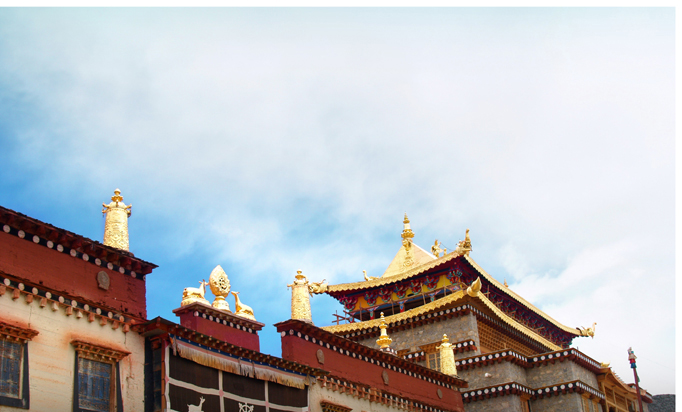 圣殿始建于公元7世纪,是藏王松赞干布为迎娶文成公主而建的宫殿。宫殿为石木结构,5座宫顶金光灿烂,气势雄伟,是藏族古建筑艺术。