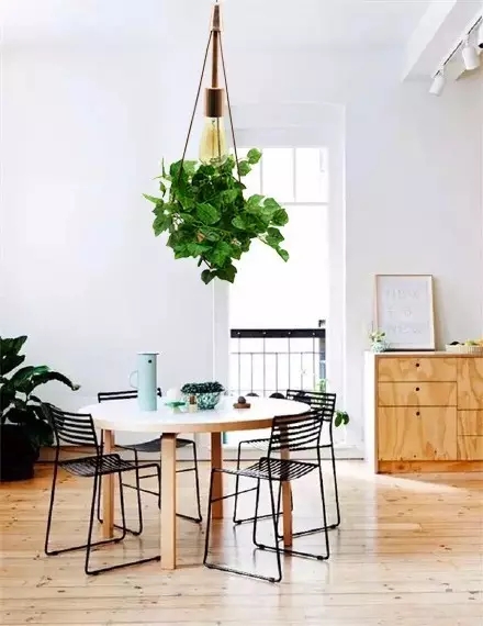 创意的灵感在这一瞬间爆发,将悬挂的吊灯和绿植结合会有怎样的视觉体验?