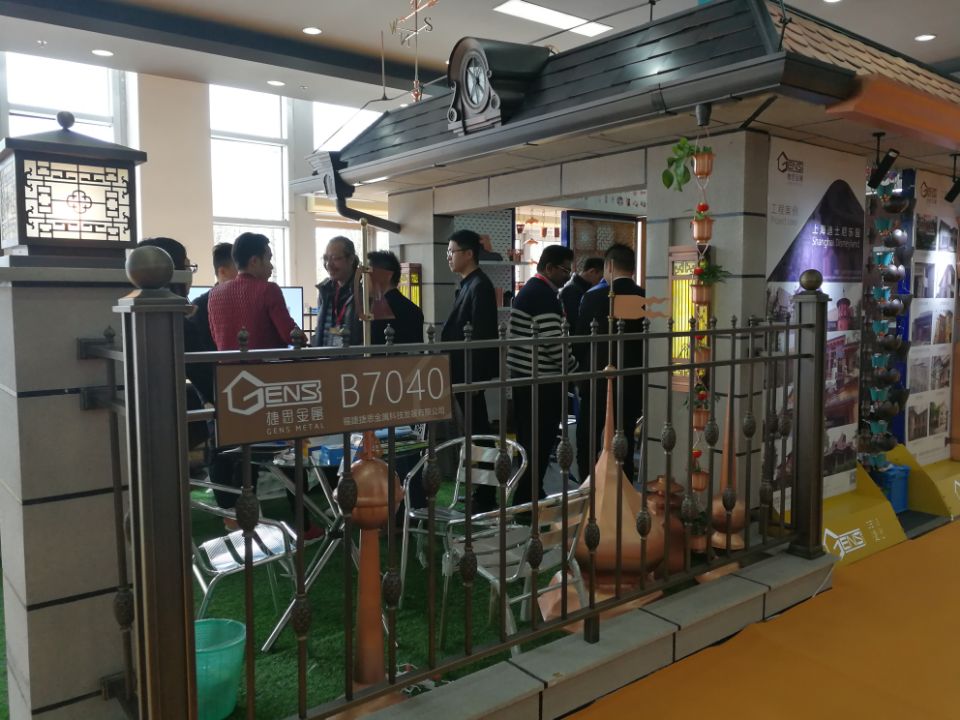 厦门石材已成为全球展览规模大、参展企业数量多的专业石材展览会,受到全球及相关行业的高度关注。此次捷思作为建筑专业类的参展商将整个展位布置成模拟的小型房屋系统:建筑金属落水系统、屋面装饰系统、屋面避雷系统以及灯饰、室内装饰以及铜板镂空等多个展品。