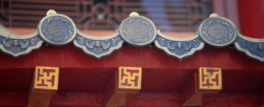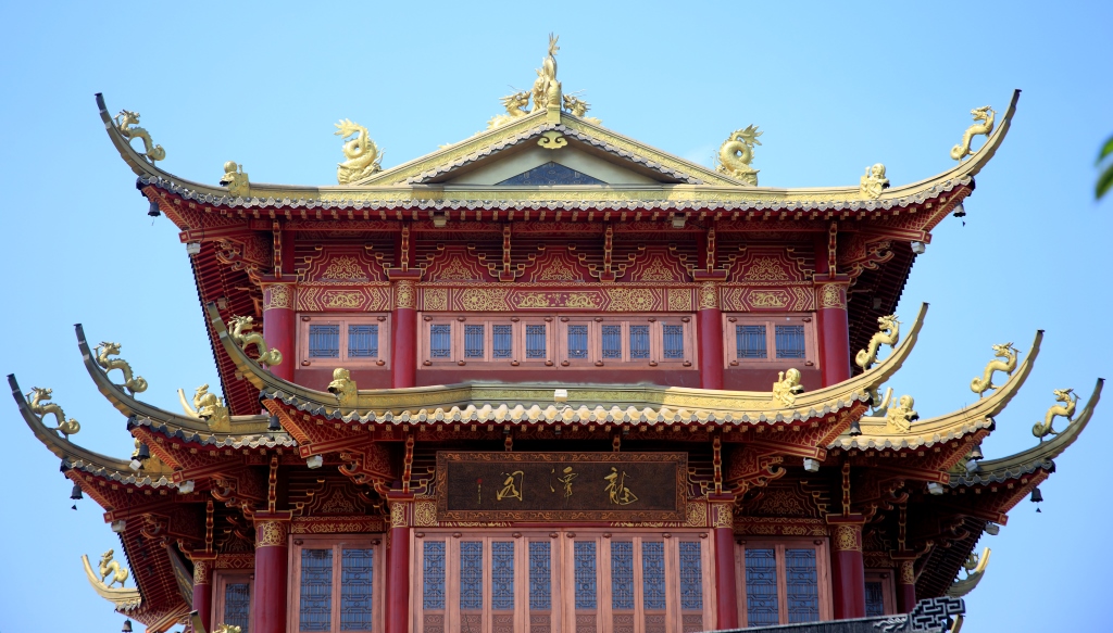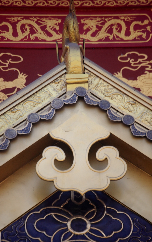 在古建筑中,铜以其耐用的天然品质和厚重的文化底蕴常常是画龙点睛的一抹亮色。在龙潭阁铜装饰工程中,突出以“龙”为主题进行整体设计,同时又注重使不同材料和设计风格各得其所。黄铜,光华灿然,紫铜,气质内蕴,大门岿然屹立,是沉稳,阁角翩翩欲飞,是灵动,时或大刀阔斧,时或精雕细刻,处处展现着建筑与铜装饰的巧妙结合,时时透露出追求浑然天成的匠心独运