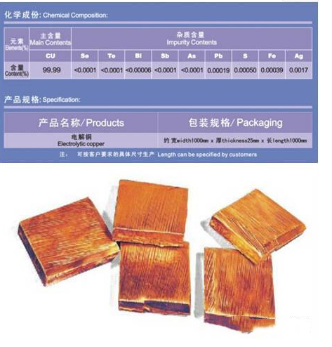 产品:电解铜,0#,纯度99.99%