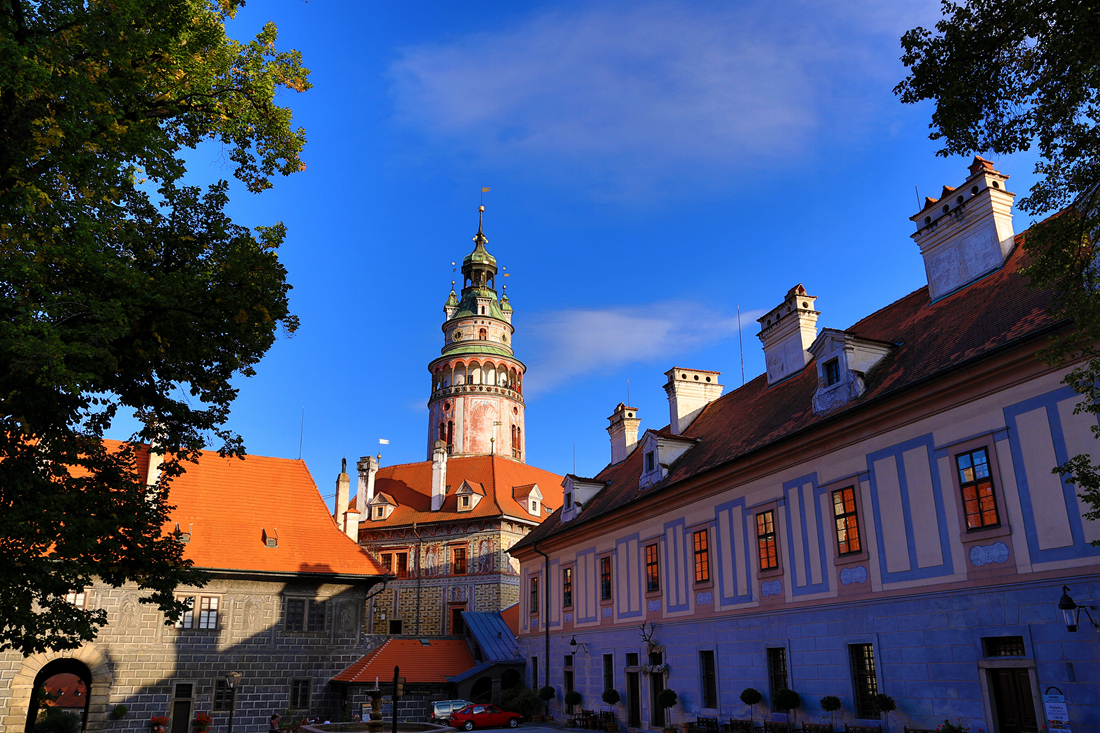 赫拉德克塔(彩绘塔)是这座城堡的象征,高高矗立的塔身尖顶的旗帜由黄铜打造,塔部尖顶经过千年的洗礼已被氧化成较为历史韵味的铜绿色,给这童话般的小镇渲染了积淀千年的文艺气息。